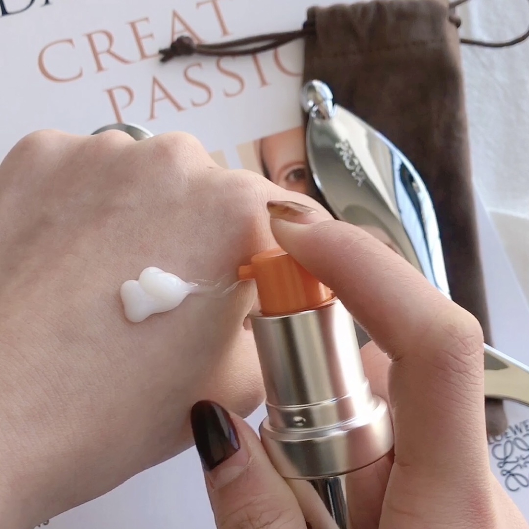 1、、、用无名指指尖取适量眼霜,,,点按于上下眼睑处;